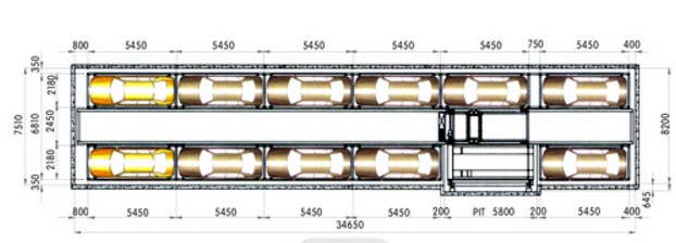 機(jī)械式立體停車庫應(yīng)分隔成多個停車區(qū)域,并設(shè)置防火墻進(jìn)行分隔。當(dāng)停車數(shù)量達(dá)到一定標(biāo)準(zhǔn)時,應(yīng)進(jìn)行防火墻分隔。
